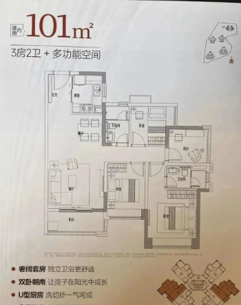 【约89㎡舒适三房】:经典的小三房设计,适合三口之家。三开间朝南,采光通风一流;餐客一体,空间感强;主卧套房设计,带独立卫浴,私密性好;两个次卧大小适中,满足孩子成长或老人居住需求。