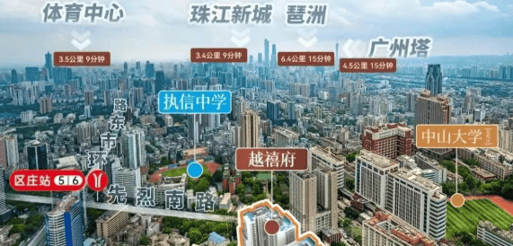 越禧府坐落于越秀区华乐街道先烈南路23号,与百年名校执信中学本部仅一街之隔。执信中学作为广东省首批国家级示范性高中,其卓越的学术声誉与深厚的人文底蕴,早已成为无数家庭心中的教育灯塔。而越禧府所处的学区,更是广州教育资源最密集的区域之一。