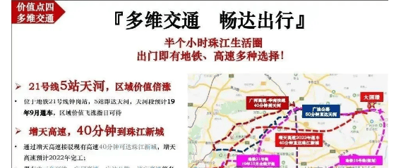 Q4:项目周边交通配套是否完善?到广州核心城区需要多久?A4:项目交通配套完善,可通过地铁21号线接驳直达广州全城,自驾经广汕公路、珠三角环线高速、增天高速(在建)等干线,40分钟左右可直达珠江新城。目前地铁接驳需乘坐电动车或公交,未来区域交通将进一步升级,通勤效率更高。