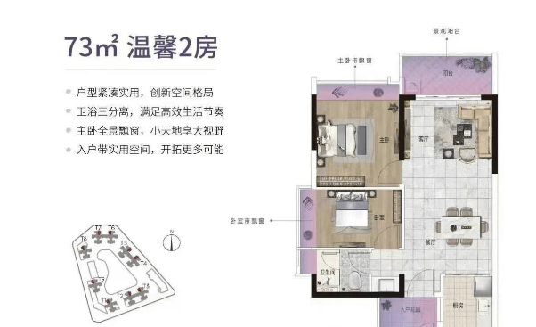 目前富力新城在售的主要为二期产品,包括T1栋、T2栋、T3栋和T9栋等多栋住宅楼,均为现房状态。户型选择丰富,涵盖从73平方米的两房到120平方米的四房等多种户型,适应不同的家庭需求。例如,73平方米的两房总价约为130万元起,适合预算有限的小家庭;而120平方米的四房总价大约210万元起,则更适合追求宽敞生活空间的家庭。每个户型都经过精心设计,力求提供最佳的空间利用率和舒适度。