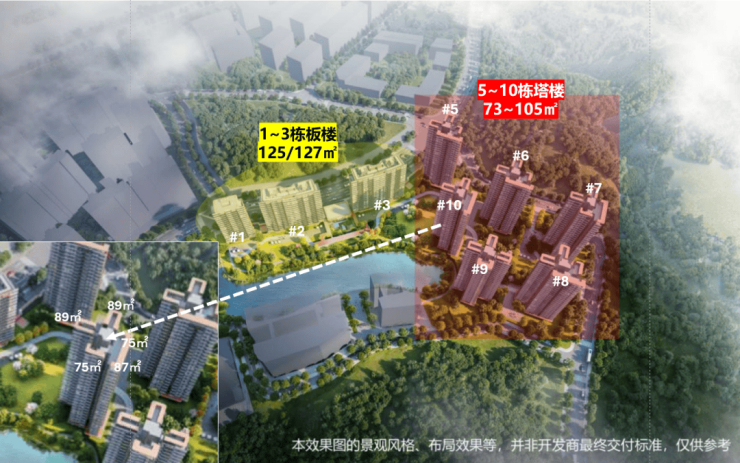 户型面积:75㎡南向三房(塔楼),89㎡南向三房(塔楼),126㎡板楼四房