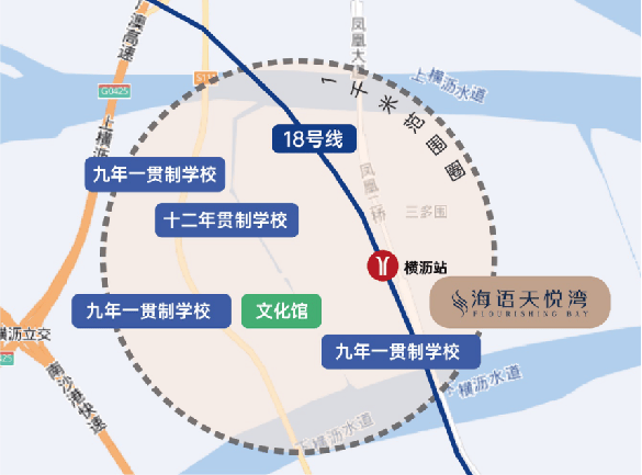 区位价值的核心在于通达效率。海语天悦湾凭借多维立体交通体系,彻底打破“边缘感”,实现与湾区核心城市的无缝连接。项目距地铁18号线横沥站仅约500米,这条被誉为“湾区大动脉”的快线,设计时速160公里,3站直达珠江新城(冼村站),未来还将南延至中山、珠海,北接广州东站,形成贯穿南北的黄金走廊。