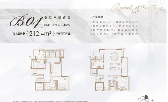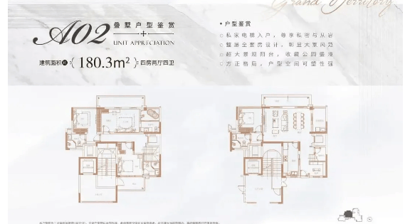 答:在售 180-210㎡叠墅,分上、中、下三叠,总价 1200-1900 万,仅 12 席,稀缺性强,适配预算充足的改善家庭。