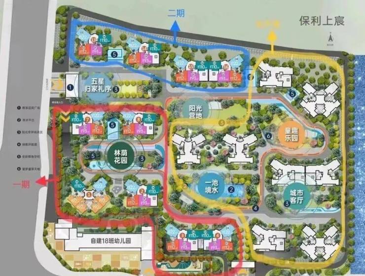 保利上宸精心打造了“一环双轴六主题”的风情园景,包括约600平方米的亲水平台、600米长的乐活有氧跑道以及约320平方米的童梦游乐区。每个户型都能欣赏到优美的园林景观,营造出一个舒适宜人的生活环境。