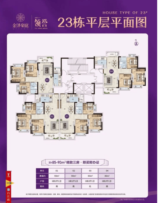 金泽豪庭当前在售第四期18栋、19栋、22栋、23栋房源,主力户型为建面约85-114㎡三至四房,全部为精装现房交付,户型设计兼顾实用性、舒适性与灵活性,适配不同家庭的居住需求,每一款户型都经过精心打磨,最大化提升空间利用率与居住体验。
