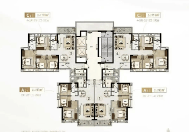 项目在售户型涵盖93-94-109-110-129㎡多种面积段,满足刚需到改善的不同居住需求。核心优势在于高达82%的得房率,相较于同板块同类项目更具性价比,最大化拓展室内使用空间。其中110㎡户型设计精巧,布局合理,兼具实用性与舒适度;其余户型虽偏向传统设计,但凭借高得房率与3米层高,有效提升居住体验。目前主推1栋、2栋现楼房源,3栋为现楼尾货,1栋涵盖93㎡、129㎡、130㎡户型,2栋涵盖93㎡、109㎡、129㎡户型,3栋涵盖94㎡、109㎡户型,精装交付标准可直接拎包入住,省去装修繁琐流程。