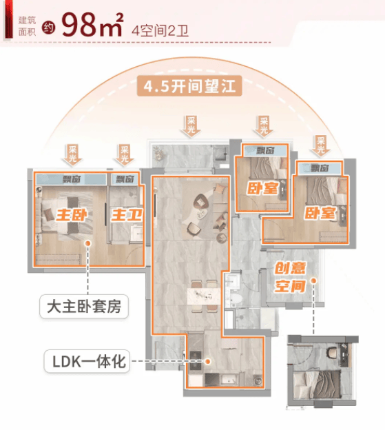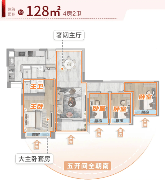 (四)128㎡四房两卫:东南向瞰江,成长型空间