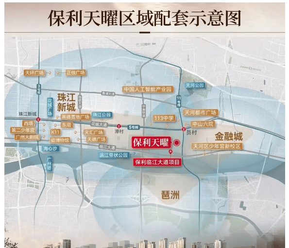 项目距地铁5号线与11号线(环线)交汇的员村站仅约150–900米(视楼栋而定),步行10–15分钟可达。11号线作为广州首条地铁环线,2025年已全线贯通,串联琶洲、珠江新城、白鹅潭、广州东站等核心枢纽,真正实现“一环通全城”。地面交通同样强悍:紧邻花城大道南延线(规划中)、黄埔大道、临江大道、华南快速及科韵路,15分钟内可直达珠江新城、琶洲会展、天河智慧城。无论是CBD通勤、广交会参展,还是周末去三溪山姆、宜家采购,自驾或地铁都极为高效。尤其对于琶洲互联网大厂从业者而言,保利天曜堪称“职住平衡”的理想选择。