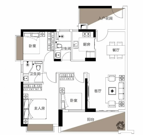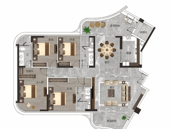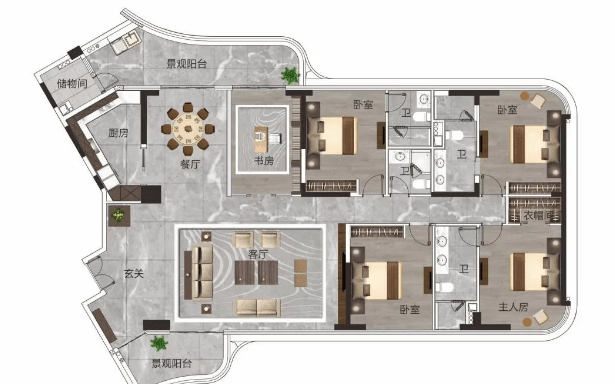 宽敞明亮的空间布局,包含舒适主卧、独立三分离卫浴、超大景观阳台等特色配置。