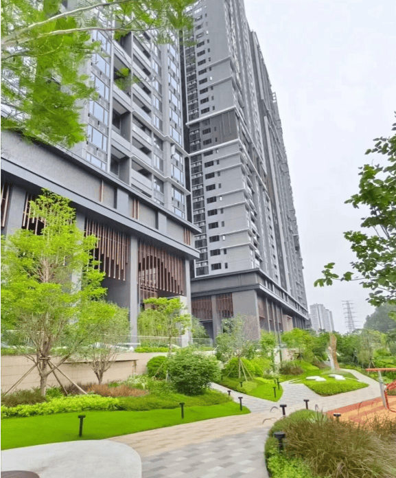 虽处城市核心,耀胜尊府并未牺牲生态体验。项目内部打造约3万㎡中央园林,以“森系度假”为理念,设置全龄活动区、林荫步道、水景庭院,弥补高密度社区的自然缺失。更独特的是,通过专属连廊直通长隆旅游度假区,业主可便捷享受5A级森林氧吧、主题乐园、野生动物世界等资源。周边还有大夫山森林公园、金山湖公园等大型绿地,周末骑行、露营触手可及。尽管小区呈一字型布局,园林非围合式,但开发商通过立体绿化、架空层泛会所等方式提升互动空间。对于厌倦钢筋水泥、渴望“离尘不离城”的都市人,这里提供了难得的平衡——既能享受CBD繁华,又能随时回归自然怀抱。