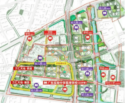 项目配建了一所54班规模的九年制省实验学校花地湾校区,涵盖了小学部和初中部,教育资源优越。尽管升入中学阶段需要参加全区统一摇号分配,但优质的教育资源依然为家长和学生提供了更多的选择机会。