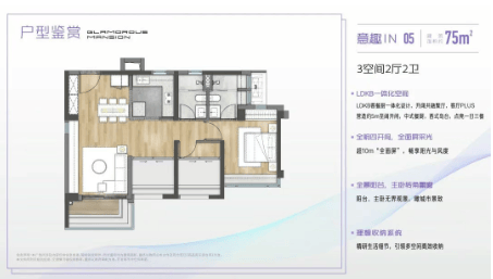 75㎡三房两卫:紧凑实用,适合小家庭居住。