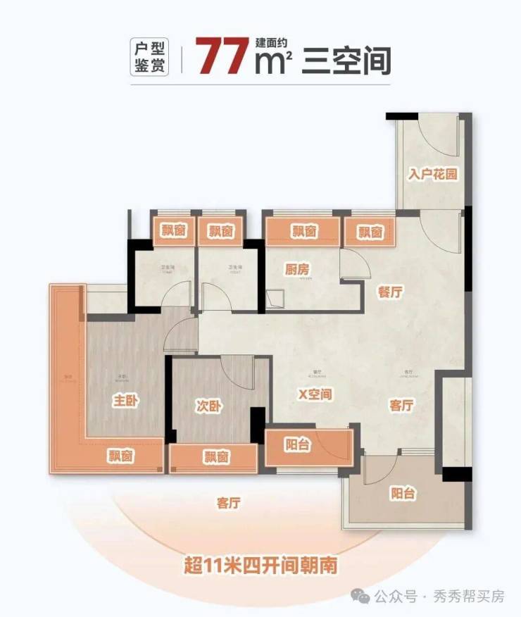 格局:三房两厅两卫 + 入户花园