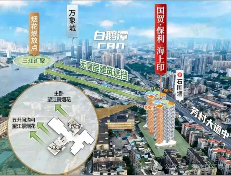 江景视野:高楼层户型可俯瞰珠江白鹅潭江景,视野开阔,江景资源稀缺,升值潜力巨大。