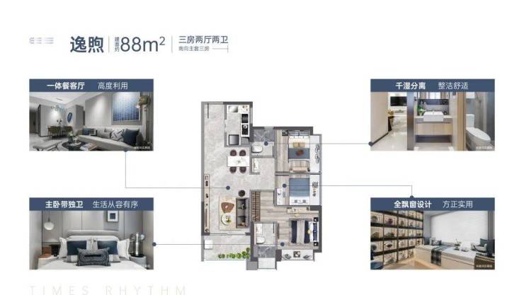 时代天逸提供的多种户型设计充分考虑了不同家庭的需求。80平米三房户型方正实用,空间布局合理;88平米三房户型则在前者基础上进行了优化,更加宽敞舒适;而106平米四房户型则适合家庭成员较多的家庭,房间数量充足,布局方正,动静分区合理,保证了居住的舒适度。