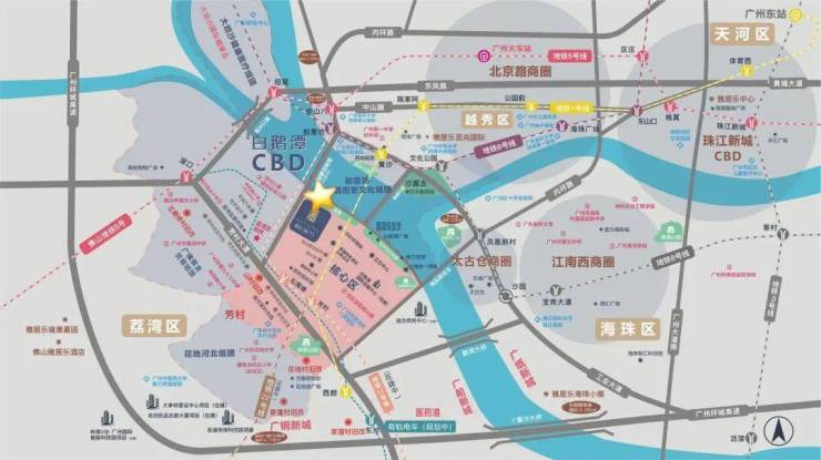 在交通与生活配套层面,项目享有“轨道环绕、未来可期”的立体优势。根据规划,项目所在的白鹅潭板块将形成“四地铁一隧道”的密集交通网络,未来可通过轨道交通快速通达珠江新城、琶洲、广州南站等全城核心。虽然具体站点与线路开通时间需以官方最终发布为准,但规划的能级已决定了其未来的交通便利性。自驾方面,可通过洲头咀隧道、内环路等快速连接两岸。商业与休闲配套上,项目可共享白鹅潭CBD规划中的万象城、太古里、“三馆合一”艺术中心、滨江创意公园等世界级配套。同时,下楼即可享受户田芳树大师设计的弧形园林,本身就是一处高审美的休闲空间。