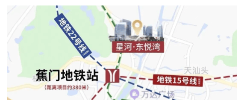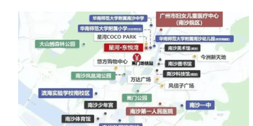 星河东悦府依托 “1 公里黄金配套圈”,打造 3 分钟优质生活圈。交通上,距地铁 4 号线蕉门站约 610 米,3 分钟内步行可达,未来衔接 15 号线(规划)、22 号线(建设中),3 站到庆盛高铁站(接驳深港);3 分钟内接入进港大道,快速连通广澳高速,自驾 30 分钟内达南沙湾、明珠湾,通勤高效适配湾区客群。教育上,配建 3 班托儿所 + 18 班华附幼儿园 + 24 班华附小学(2022 年已开学),1 公里内华师附中,3 分钟内步行可达学校,实现 “目送式 12 年教育”。商业与生态上,星河 COCO Park3 分钟内步行可达,蕉门滨河公园 3 分钟内步行可达,健康与消费需求一站式满足,让顶配资源成为 “家门口福利”。