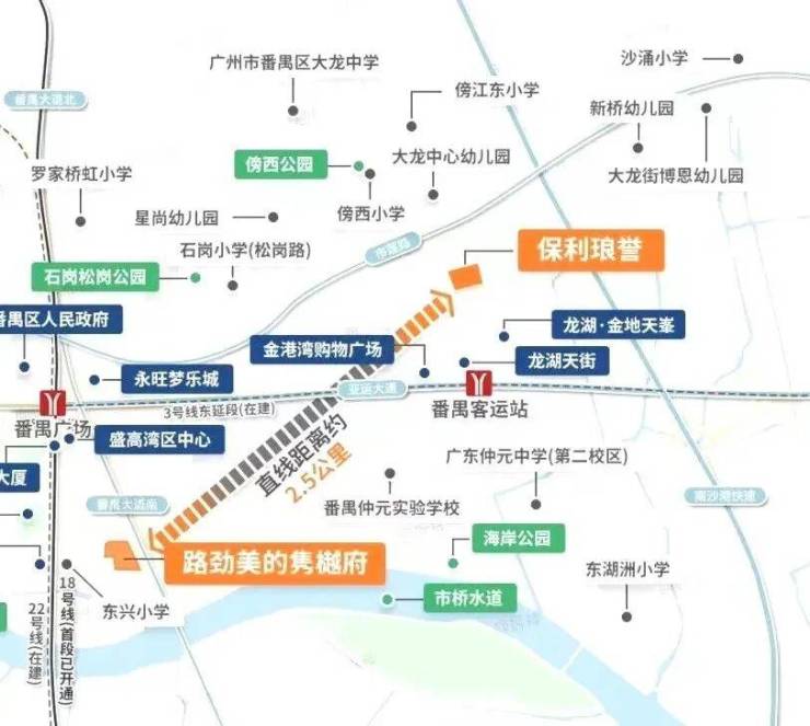 与 3 号线东延段傍江站直线距离约 500 米,已开通哦~坐地铁一站到番禺广场,去珠江新城都无需换乘。番禺广场站更是五轨交汇(3 号线、18 号线、22 号线、3 号线东延段、17 号线规划中),一站畅行琶洲,两站通勤珠江新城,轻松畅达城市各处😎
