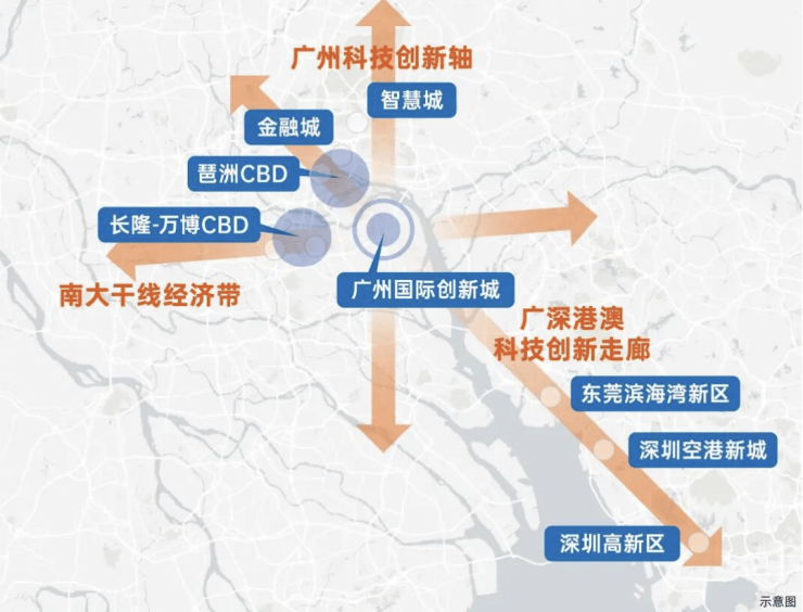 项目位于万博核心区,与长隆万博、广州塔琶洲双世界级商圈环绕,形成繁华辐射圈。周边“三大科创智慧产业带”交汇:广深港澳科技创新走廊、广州科技创新轴及南大干线经济带,承载创新企业、科技型产业及高端人才资源。区域内交通立体化,高速路网与轨道交通互联,双地铁加持,实现30分钟主城生活圈。黄金区位不仅提供居住便利,也带来投资与资产增值潜力。