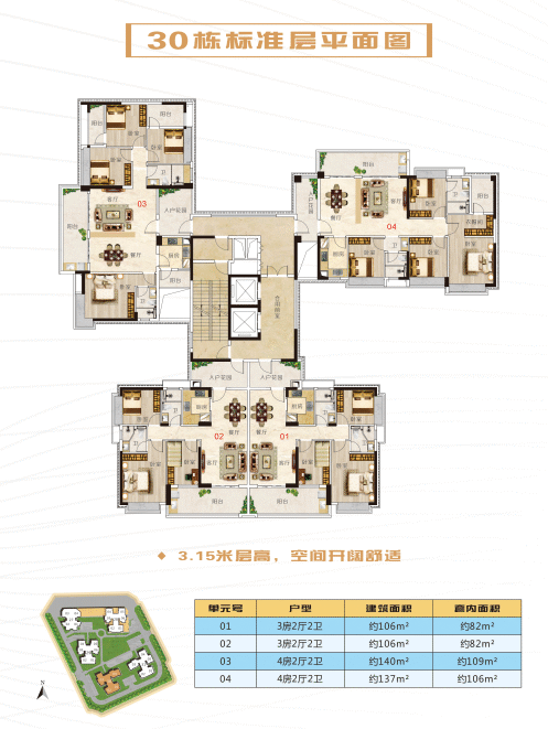 这些户型均采用了现代设计理念,确保每个房间都能获得充足的采光和通风,同时兼顾私密性和功能性。
