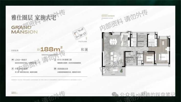 高得房率 + 无浪费空间:摒弃冗余过道、凹凸结构,套内实用面积接近建面。138㎡户型实用面积≈131㎡,媲美普通楼盘 160㎡户型;188㎡户型实用面积≈178㎡,尺度堪比大平层。