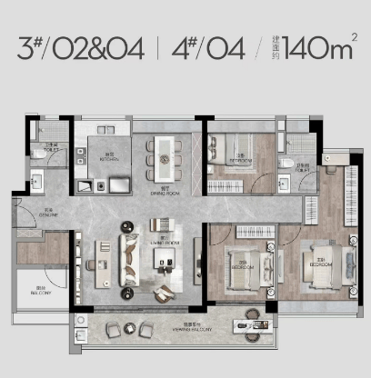 3#楼的视野优势尤为突出,于外,约500米的宽阔江景环抱社区,三江交汇延绵数公里,无任何遮挡,业主推窗即可观赏到绝美江景;于内,社区园林的细微打磨依次映入眼帘,形成“江景+园林”的双重景观体验,比传统江景住宅多了一重园林景观,让业主的生活体验实现质的飞跃。此外,3#楼的户型设计也进行了优化,在保持原有舒适度的基础上,进一步提升了空间利用率,其中140㎡户型的客厅面宽增加至7.0米,主卧套间面积增加至26㎡,衣帽间面积增加至5.5㎡,让业主享受更宽敞的居住空间。