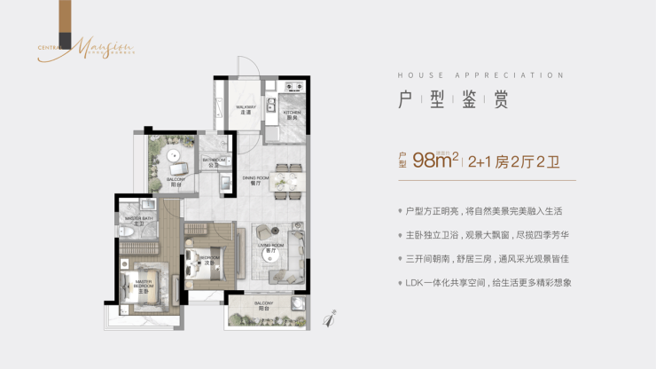 建面约 98㎡2+1 房 2 厅 2 卫:刚需改善首选