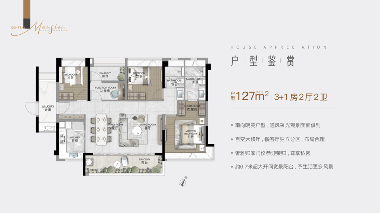 建面约 127㎡3+1 房 2 厅 2 卫(横厅):改善升级优选