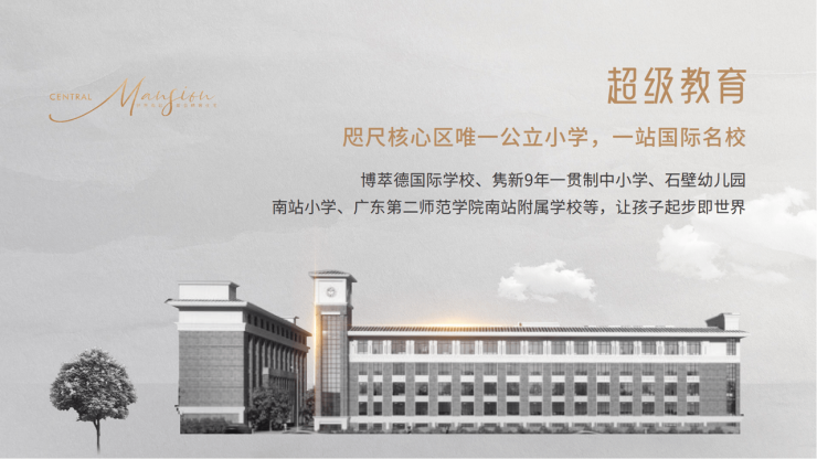 项目周边教育资源丰富,形成了一站式基础教育体系。石一幼儿园、石壁小学、南站小学、广东第二师范学院南站附属学校等公办学校环绕,孩子上学无需远行。更值得一提的是,由新世界集团与周大福教育集团联合打造的博萃德学校,作为 12 万㎡的国际化名校,提供从幼儿园到高中的精英教育,让孩子在家门口就能接轨世界教育资源。