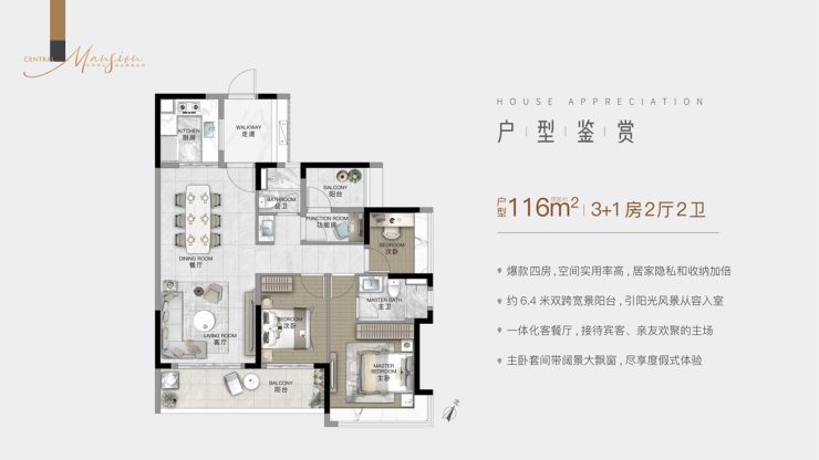 建面约 116㎡3+1 房 2 厅 2 卫:全能家庭空间