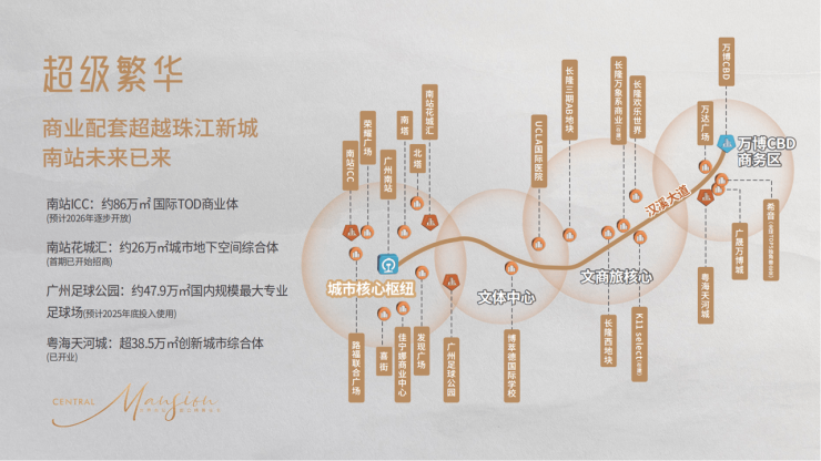 根据广州 “5+2+4” 国际商圈体系规划,广州南站将升级为湾区枢纽门户,筑就枢纽型国际商圈。番禺区政府工作报告中也明确提出,要高标准开发建设 “广州南站枢纽型国际知名商圈”,大力发展总部、楼宇、文商旅和数字经济。政策的持续加码,将吸引更多优质资源集聚,推动区域价值不断提升。