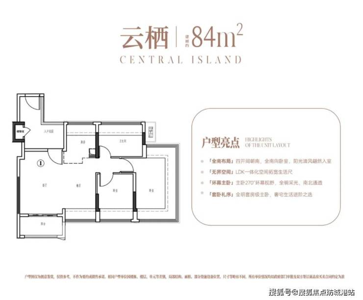 84㎡三房两厅:得房率85%,“LDK一体化”设计,客厅、餐厅、厨房无缝连接,总价365-406万;