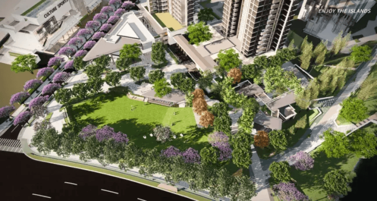 项目内部打造约2万㎡河滨公园,含800米滨水绿道、亲子游乐区、垂钓平台等,满足全龄段户外活动需求。