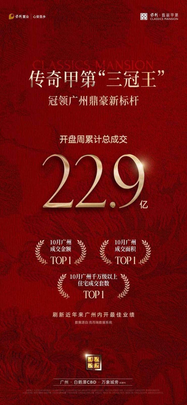 - 在房地产市场看似波澜不惊的态势下,广州却展现出强劲的发展动力。据克而瑞监测数据,10月一线城市成交面积持平,而广州以61万平方米成交面积、环比6%的增长领跑。同期,广州新房市场网签量5999套,环比增长约14.1% 。其中,荔湾区更是凭借403套网签量、环比飙升36.1%成为中心城区的黑马。而这一增长主要得益于广州保利·翡丽甲第的卓越表现。该项目10月25日开盘,两小时销售额达17.8亿,一周累计成交金额高达22.9亿,一举夺得广州10月成交金额、成交面积及千万级以上住宅成交套数的三冠王,成为广州楼市的耀眼明星。售楼处电话:400 - 828 - 5661 售楼处已认证购房咨询热线。