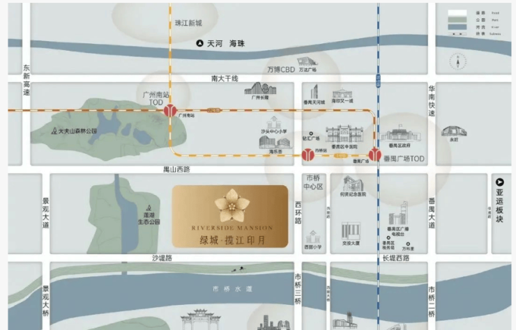 绿城·揽江印月坐落于广州市番禺区市桥芯,是该区域唯一一个南向望江的项目。由番禺交投与绿城管理共同打造,该项目以其低密度和高品质的设计理念,在市场上脱颖而出。作为城市发展的共建者,番禺交投深耕本地市场多年,而绿城管理则以“共建激动人心的品质生活”为使命,致力于创造精致且具有文化内涵的生活空间。