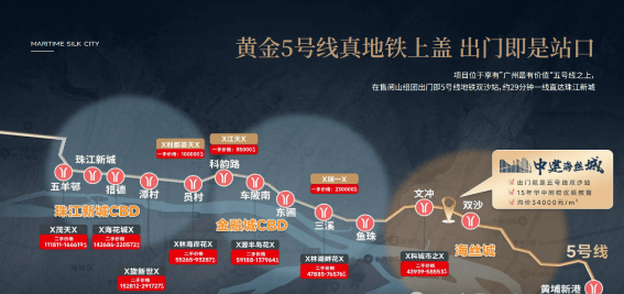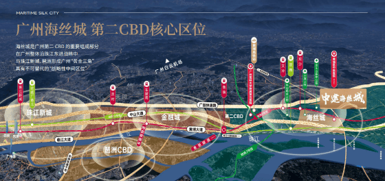 中建海丝城位于广州海丝城板块,地处临港经济片区,是广州市沿江东进发展战略的重要节点。项目与地铁 5 号线双沙站直线距离仅约 50 米,与 13 号线双岗站直线距离不到 500 米,双地铁护航,2 站可达鱼珠 CBD,5 站到金融城,6 站至琶洲东区,10 站直达珠江新城。自驾方面,广州绕城高速、广深沿江高速等要道纵横交错,交通极为便捷。同时,这里还是 “三城一岛” 战略的关键区域,更是广州第二 CBD 的重要组成部分,与珠江新城、琶洲形成 “黄金三角”,具备不可替代的 “战略性中间区位” 价值。