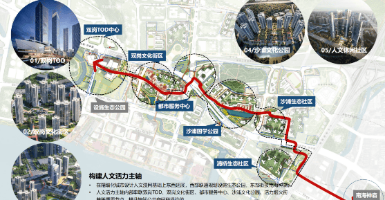 教育资源丰富,配建 15 所学校,包括完全中学、九年制学校、小学、幼儿园和托儿所,已确定引进华中师范黄埔实验学校,由本部直属管理,教学质量有保障。商业配套逐步完善,西至设施生态公园,东联南海神庙,构建漫游活力轴,双岗 TOD 中心引入华润万象系商业运营。周边还有鱼珠、大沙地等商圈环绕,美林 live 天地、山姆超市等商超一应俱全。医疗方面,中大附属第一医院(三甲)等几所医院在 2 公里之内。生态环境优越,南向望江,背靠 5000 亩龙头山森林公园,构建 “5 + 9” 公园体系,打造慢行系统网络,实现出门即入园。