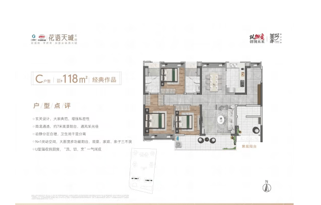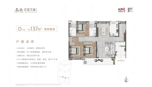 项目推出多种户型选择,包括约97㎡的2+2多功能空间、约118㎡的3+1多功能空间以及约137㎡的3+1多功能空间。每种户型均采用南北对流设计,确保室内采光充足且通风良好。其中,约118㎡户型入户带玄关,增加了居住私密性,约7米景观阳台连接客厅,提升了居住舒适度;而约137㎡户型则拥有约7.5米观景阳台,主卧带有步入式卫生间,适合三代同堂家庭。