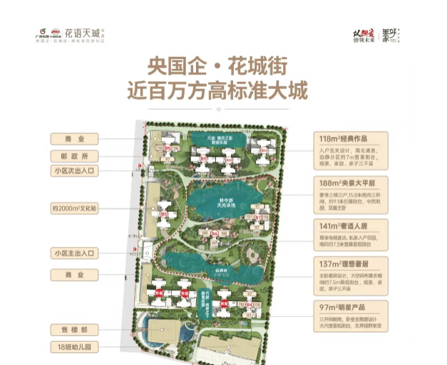 广晟中国铁建花语天珹位于广州市花都区中轴CBD核心区域,总占地面积约11.64万平方米,建筑面积约为60.69万平方米。项目由24栋住宅组成,提供3615套住房,容积率为3.5,绿化率达到了35%。车位数为4821个,车位比达到1:1.2,确保每位业主都有足够的停车空间。开发商为广州市晟都投资发展有限公司,物业则由广晟集团与中国铁建合资的物业公司管理。项目不仅拥有得天独厚的地理位置,还享受到了花都区住建局发布的多项利好政策。
