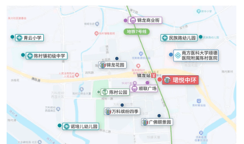 教育:周边汇聚陈村初级中学、陈村中心小学、精博中英文幼儿园等优质教育资源,15 分钟车程内覆盖全龄段教育;