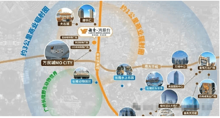 生活便利度是衡量居住品质的重要标尺。越秀·鸿璟台楼下即规划有社区商业街与肉菜市场,日常采买无需远行。步行范围内,万民城MO CITY、105新地购物广场已成熟运营,满足餐饮、零售、亲子等多元需求。稍远一点,万博CBD汇聚天河城、万达广场、四海城等高端商业体,形成番禺最具活力的消费矩阵。此外,项目还辐射长隆旅游度假区与广州南站商务圈,无论是周末休闲还是商务接待,都能轻松应对。这种“家门口烟火气+区域级繁华”的双重配置,在同价位板块中实属稀缺。