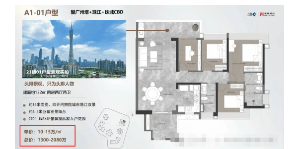 项目主力户型为93㎡三房、108㎡四房、132㎡改善四房,全部采用现代简约布局,注重通透性与功能分区。得益于北向临江优势,多数单位可望广州塔或珠江景观,高层视野尤为震撼。户型设计强调LDK一体化公区,主卧普遍带飘窗或景观阳台,次卧尺度适中,满足三边下床需求。虽受限于旧规产品,得房率仍维持在70%-90%区间,在同地段具备一定竞争力。适合追求核心区位、重视景观资源、对学位要求不极致的改善型家庭,尤其契合在琶洲、珠江新城工作的白领群体。