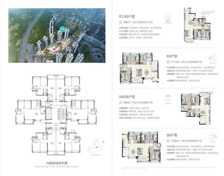 4号楼:两梯六户,面积分别为89平方米、98平方米、111平方米和112平方米。