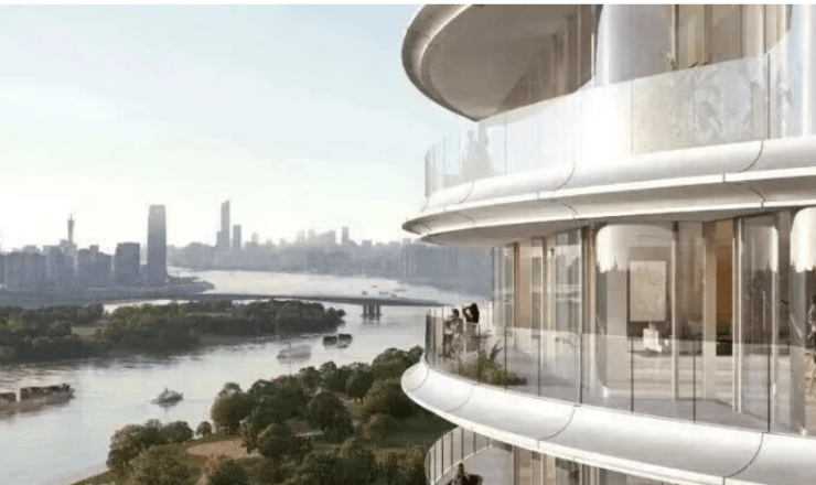 项目建筑群最高达286米,采用圆弧形外立面设计并融入珠江水纹灵感,荣获2023年A&D大奖建筑-未来发展杰出奖、AMP美国建筑大师奖等国际殊荣(数据来源:项目官方获奖公示)
