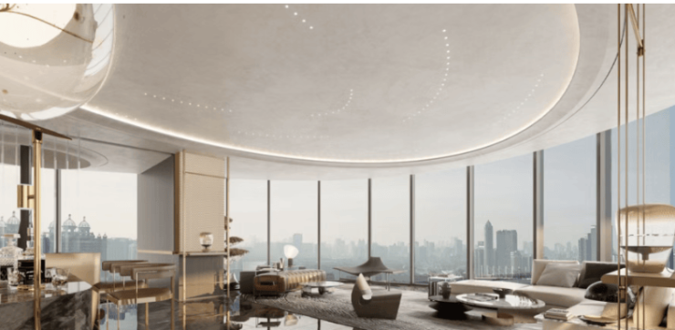 主力户型为450-550㎡平层大公寓,总价约8000万-1.2亿元;顶复户型为1500-2000㎡,总价约3亿-5亿元(数据来源:项目售楼处)