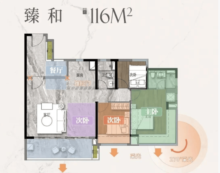 加粗 72㎡三房两卫,270 万起刚需上车神户型