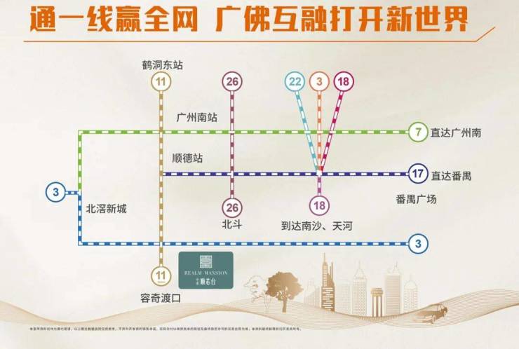 项目旁的容奇渡口站是准备施工的佛山地铁11号线的终点站,北接驳广州鹤洞东站,4站连接东乐路站换成3号线就可以到欢乐海岸,7站接驳广珠轻轨顺德站,再往北连接三龙湾,经过三龙湾有5个站,北上广州,南下容桂更加快速。