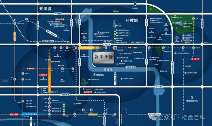 快线优势:21 号线为广州东部快线,凤岗站为快线停靠站,1 站到镇龙 TOD(接驳穗广深城际、新白广城际,快速通达白云机场、东莞、深圳),1 站黄埔(科学城),4 站天河(智慧城),快线通勤时间仅需 30 分钟左右,快速对接天河、黄埔核心产业区,日常通勤效率远超同区域其他项目。