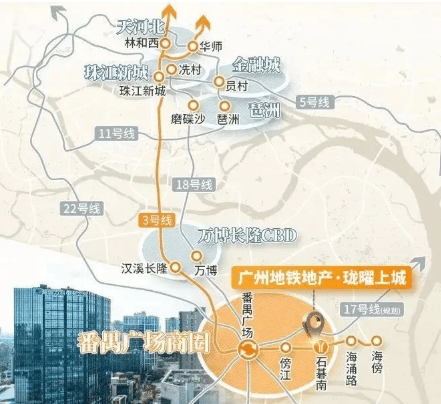 珑曜上城位于番禺核心发展板块——广州新城片区,首期组团距离地铁3号线石基南站仅约700米,步行8-10分钟即可轻松抵达。搭乘3号线,2站直达番禺广场,无需换乘即可直达珠江新城;同时无缝接驳18号线、22号线,实现“3站到万博CBD、4站抵广州南站或琶洲、5站进珠江新城”的高效通勤网络。无论你是珠江新城的金融精英,还是琶洲的互联网从业者,亦或是南站枢纽的商务人士,珑曜上城都能让你在30分钟内轻松抵达工作地。