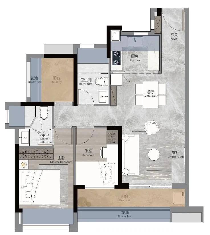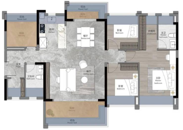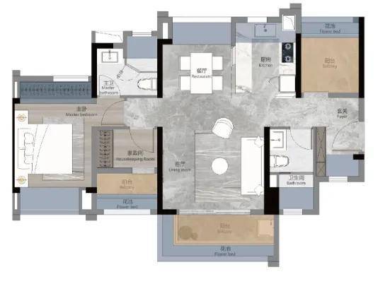 118㎡四房:双套房+270°转角飘窗,主城稀缺湖景大平层。